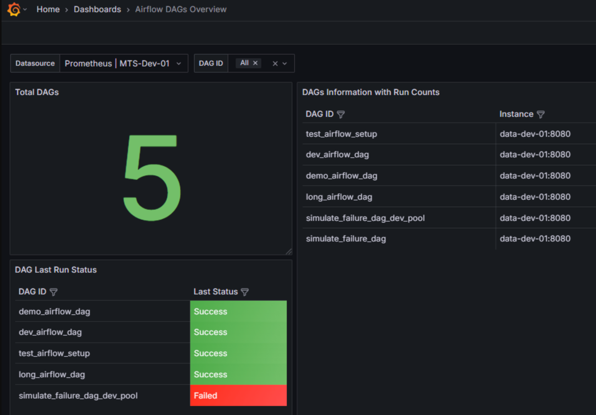 The statsd pod collects metrics from the Airflow pods and exposes them. We can use Prometheus to scrape the metrics and use Grafana to visualize it as a dashboard.