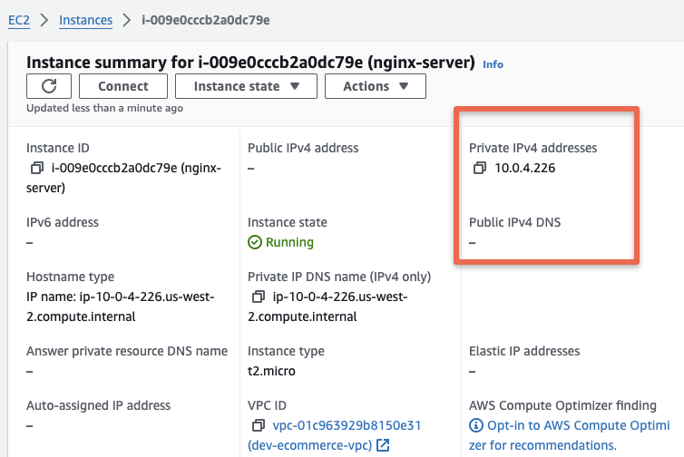 To validate HTTP access, I have installed Nginx app on the server and I am able to access it over private IP from my workstation.