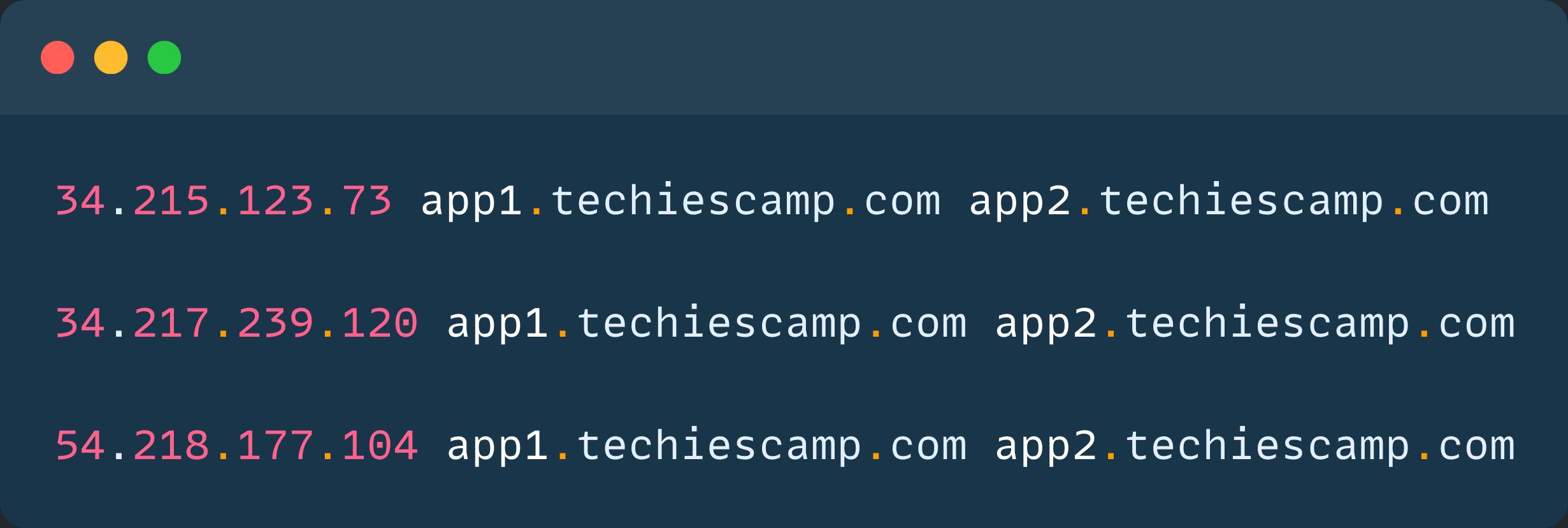 For the App1 Deployment app1.techiescamp.com and the App2 Deployment app2.techiescamp.com