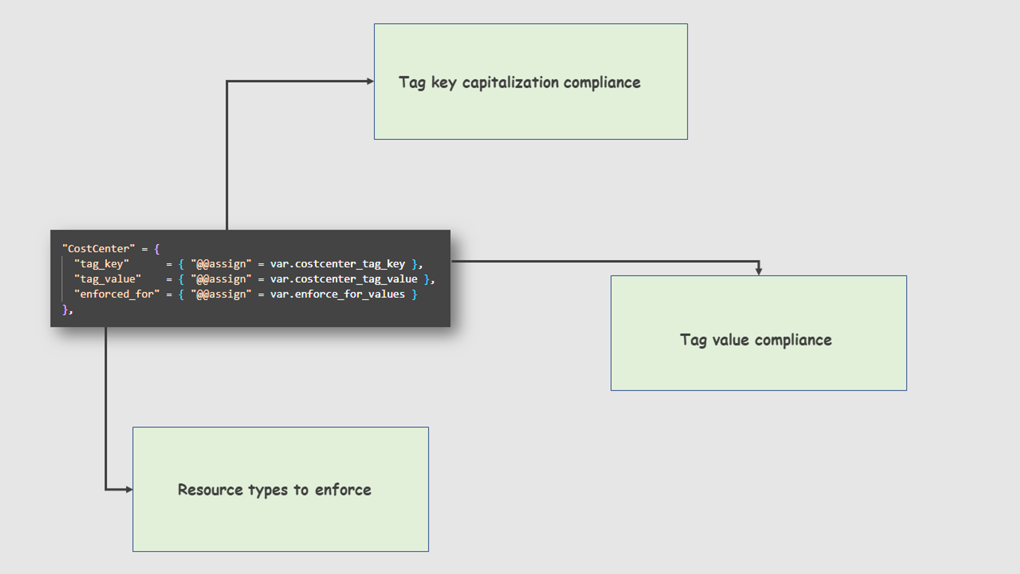 - Security Compliance: Through tags, policies can be attached to restrict the provisioning of certain resources. For example, enforcing tag value compliance for a particular resource ensures that without the proper key, no one can provision that resource.