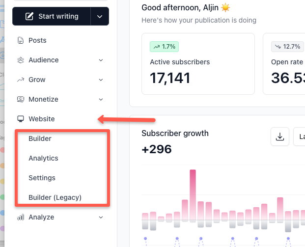 The Builder option is where we edit and customize your newsletter website. Initially, we used it because it is more beginner-friendly and easier to use. After completing the basic customization, we moved to Builder V2, which offers more customization options.