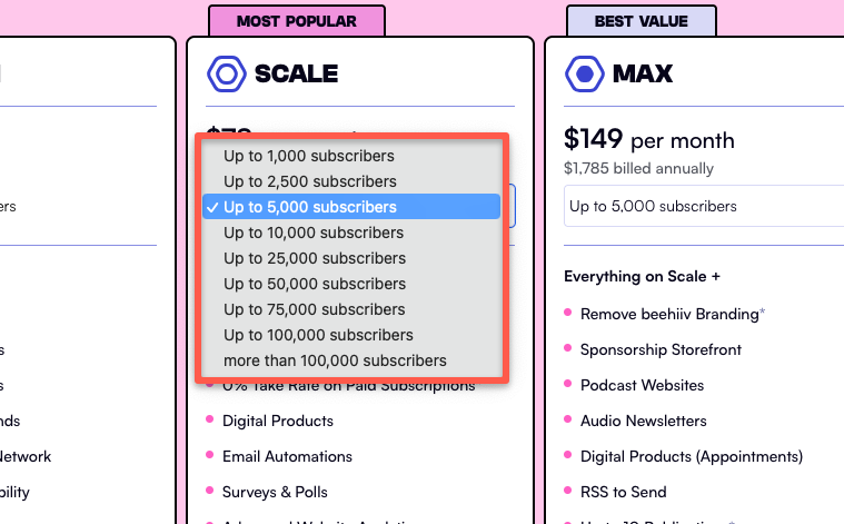 So the key thing to understand is that Beehiiv pricing scales with your subscriber count. As your audience grows, the plan cost increases accordingly.