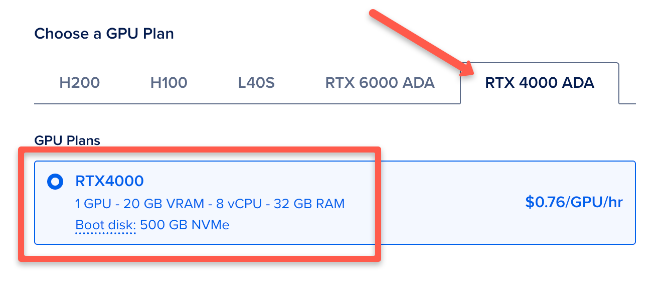 The GPU type used in this guide is NVIDIA RTX 4000 GPU provisioned on Digital Ocean.