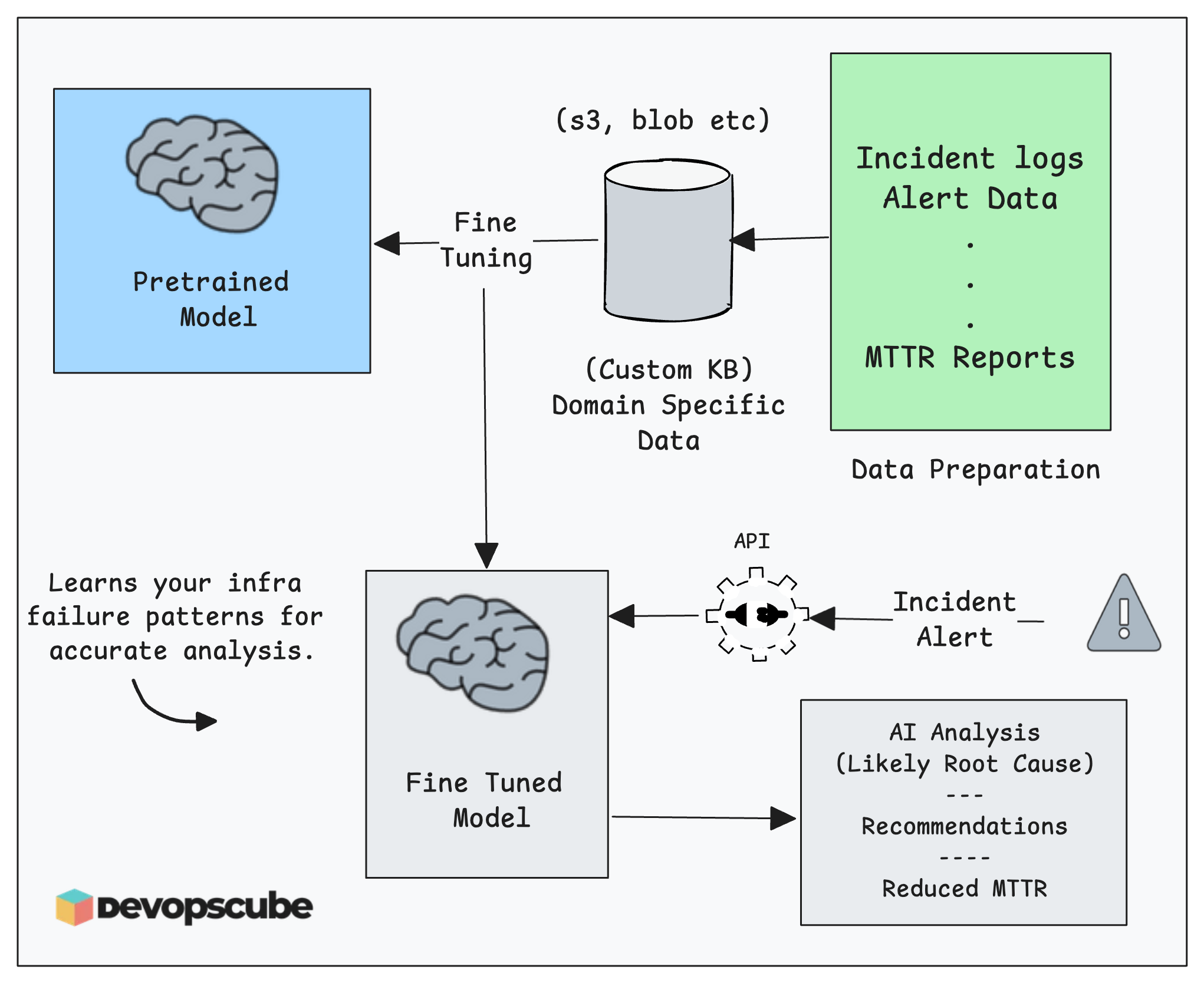 The following image illustrates an example root cause analysis using fine tuned LLMs.