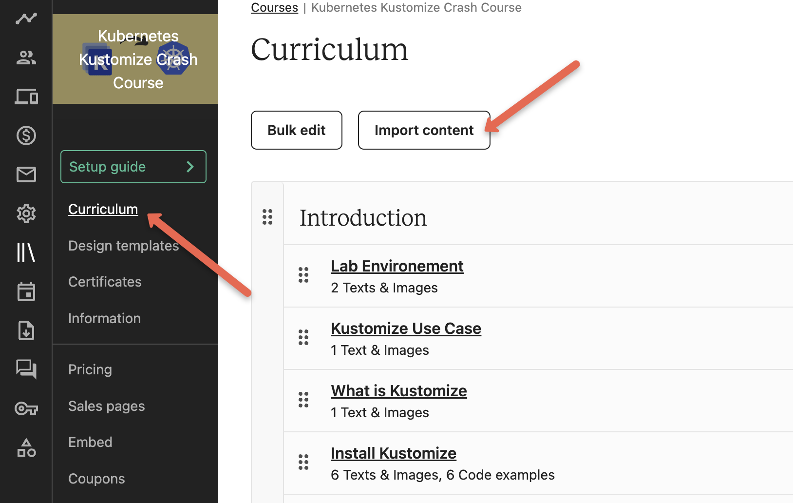 Step 1: Go to Course Curriculum Import Option