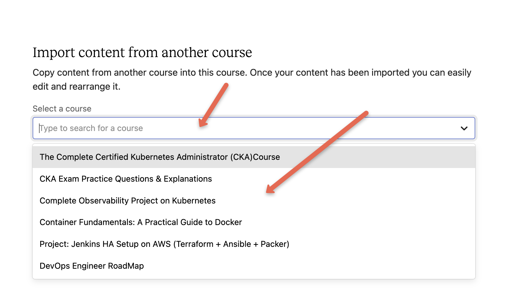 Step 2: Choose Course to Import From