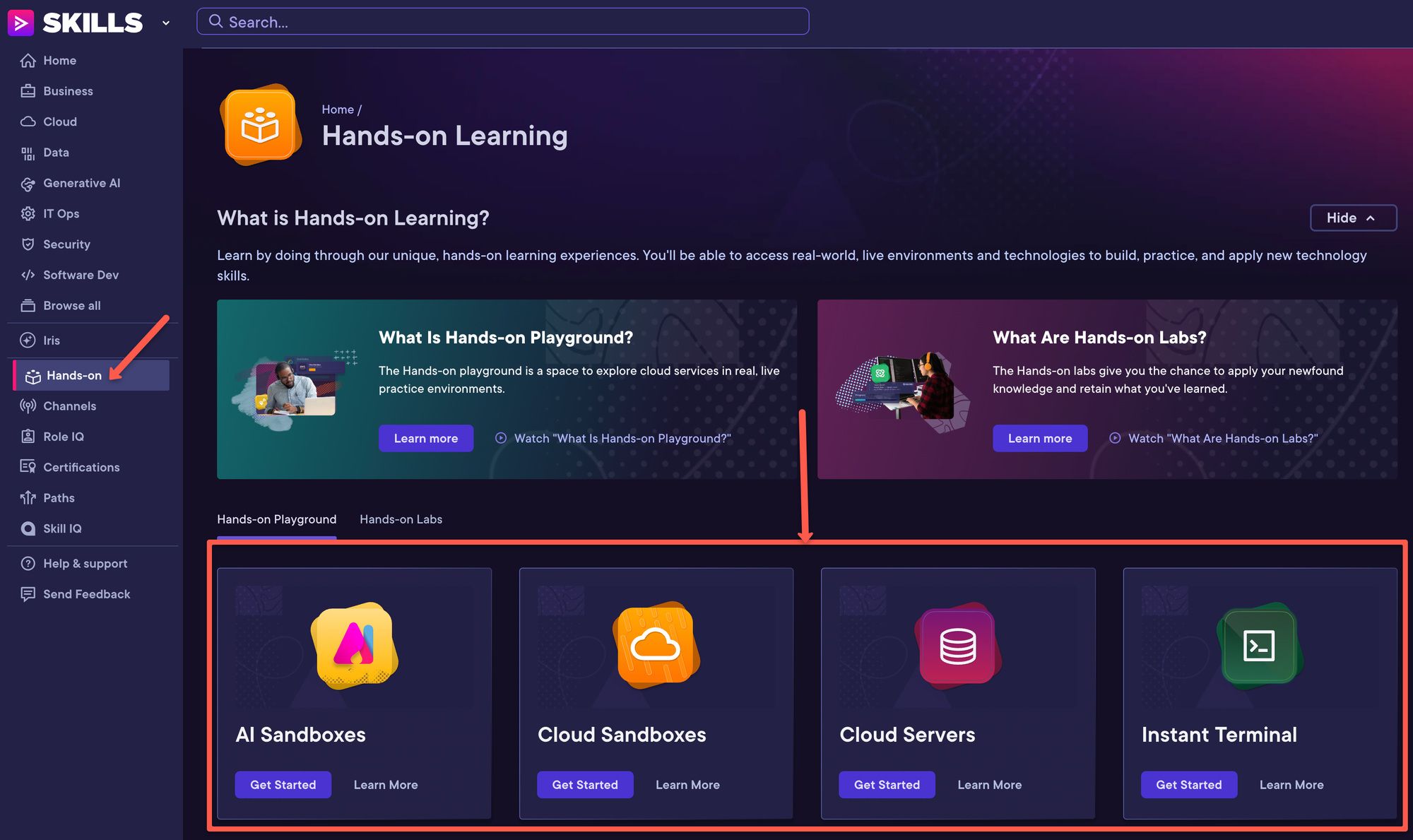 A key feature that I have used more is the "Hands-on Labs" section, where we can practically do everything on the browser based labs.