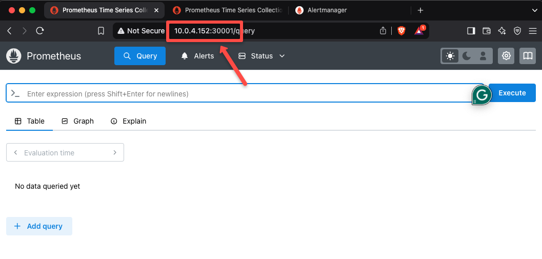 As shown below, you should be able to access the Prometheus dashboard using the Private IP of the EKS node.