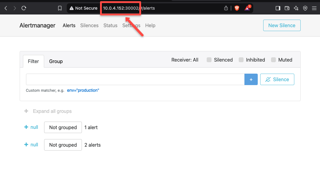 For Alertmanager Dashboard, access <NODE_IP>:30002