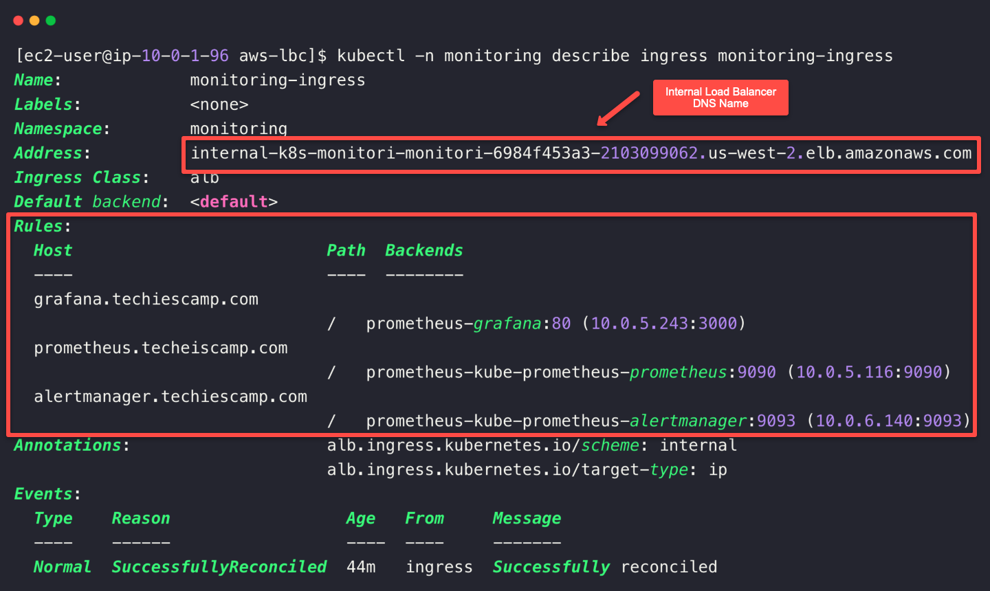 Once the AWS Load Balancer deployment is completed, an internal load balancer will automatically be provisioned when we deploy an ingress object.