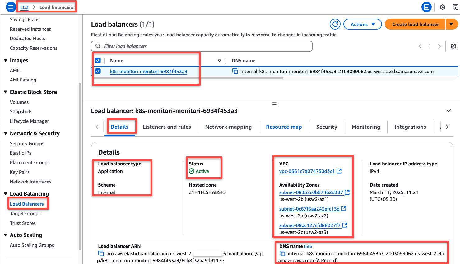 Let's open the AWS console and ensure the Load Balancer is properly provisioned.