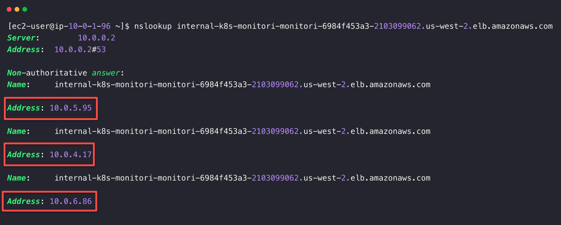 nslookup <INTERNAL_LOADBALANCER_DNS_NAME>