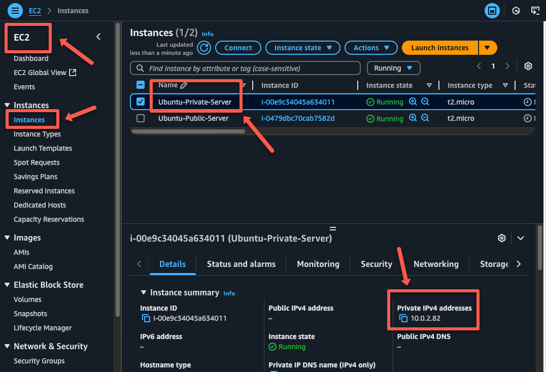 ssh -i key.pem ubuntu@<PRIVATE_SERVER_IP>