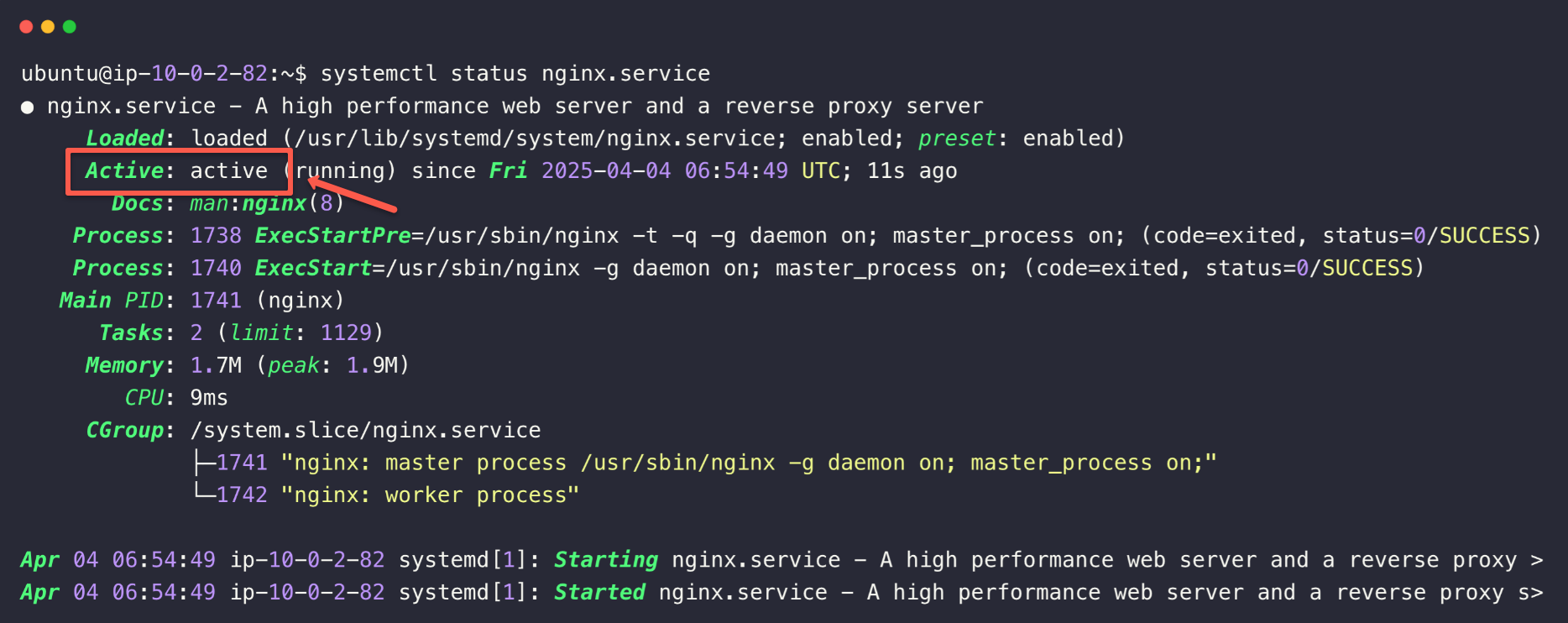 sudo apt install nginx -yNote: The private subnet should be attached with NAT, otherwise application packages won't be downloaded from the internet for the Nginx installation.To check the service after the installation,