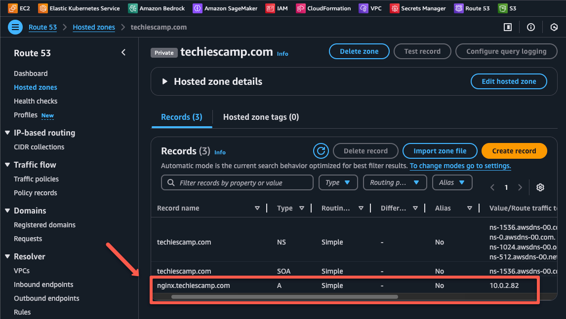 The Route53 private hosted zone setup is done, now we can test the setup.