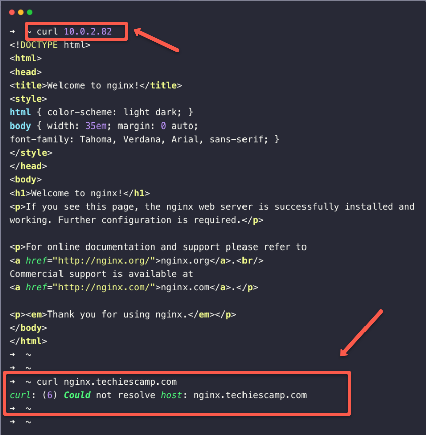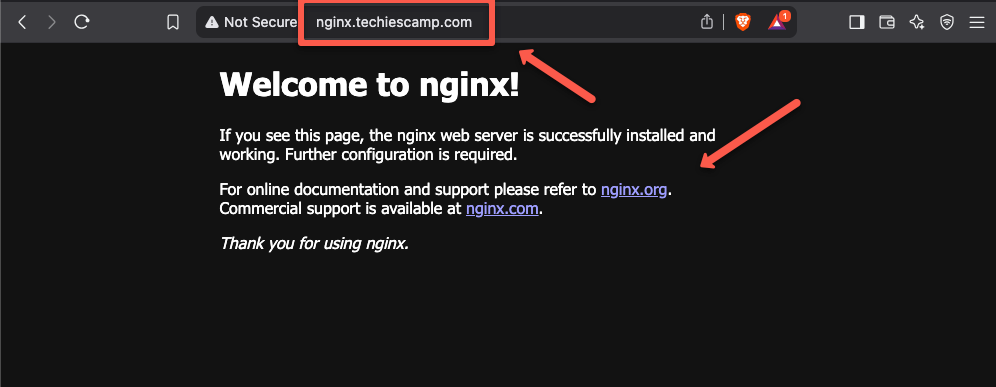 Now, we can access the Nginx server from the public server using this hostname instead of the IP address.