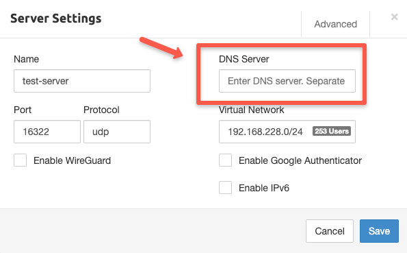 First, we need to keep the DNS details on the VPN server dashboard empty.