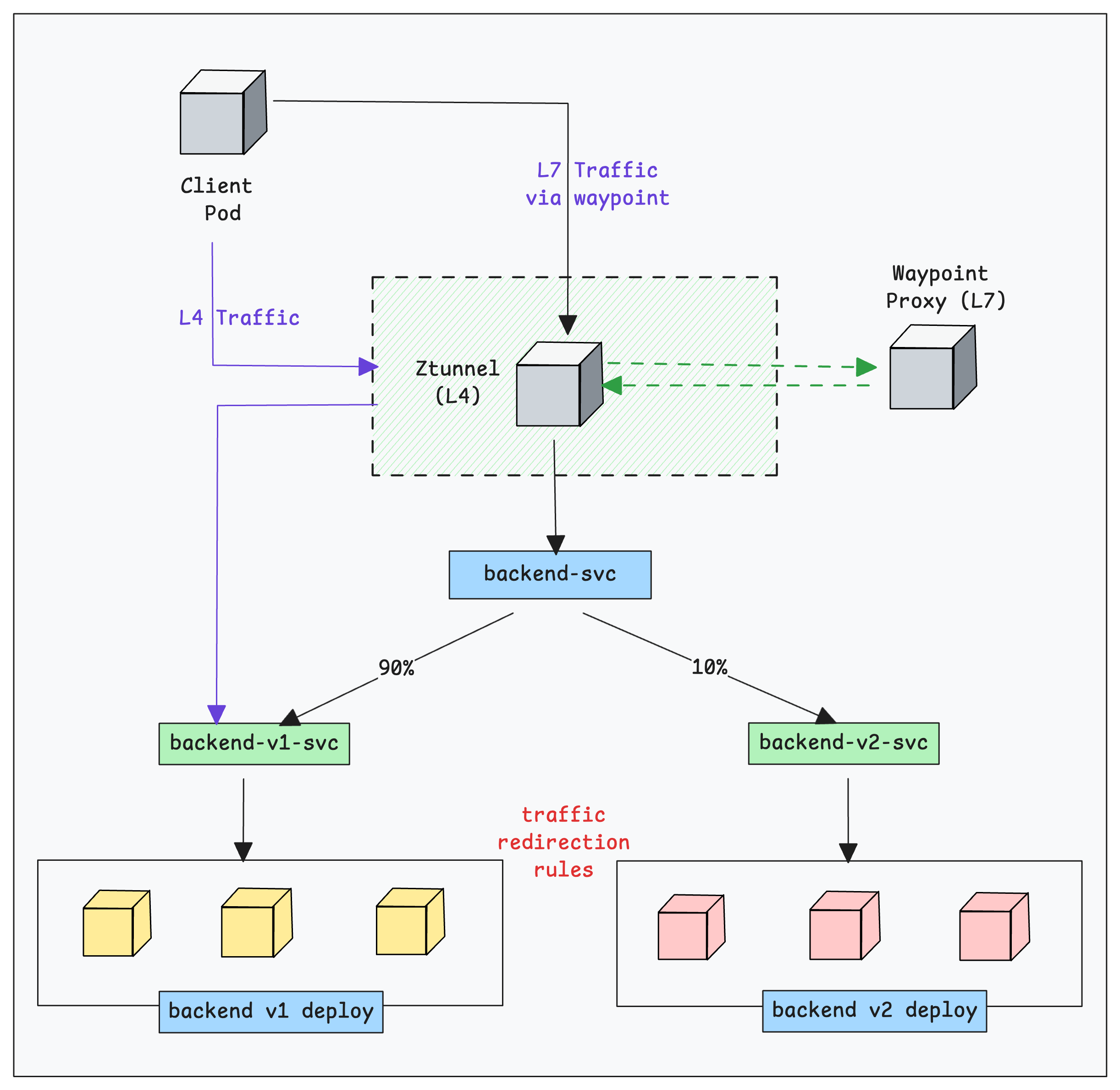 VirtualService and DestinationRule resources. While Istio Ambient mesh still supports them, it heavily favors the Kubernetes Gateway API for Layer 7 configuration using waypoint proxy.